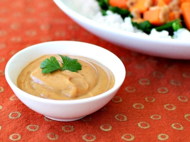 This Thai-inspired peanut sauce requires just ten minutes, some pantry ingredients, and a handful of fresh limes for a delicious rich sauce perfect for coating vegetables with.